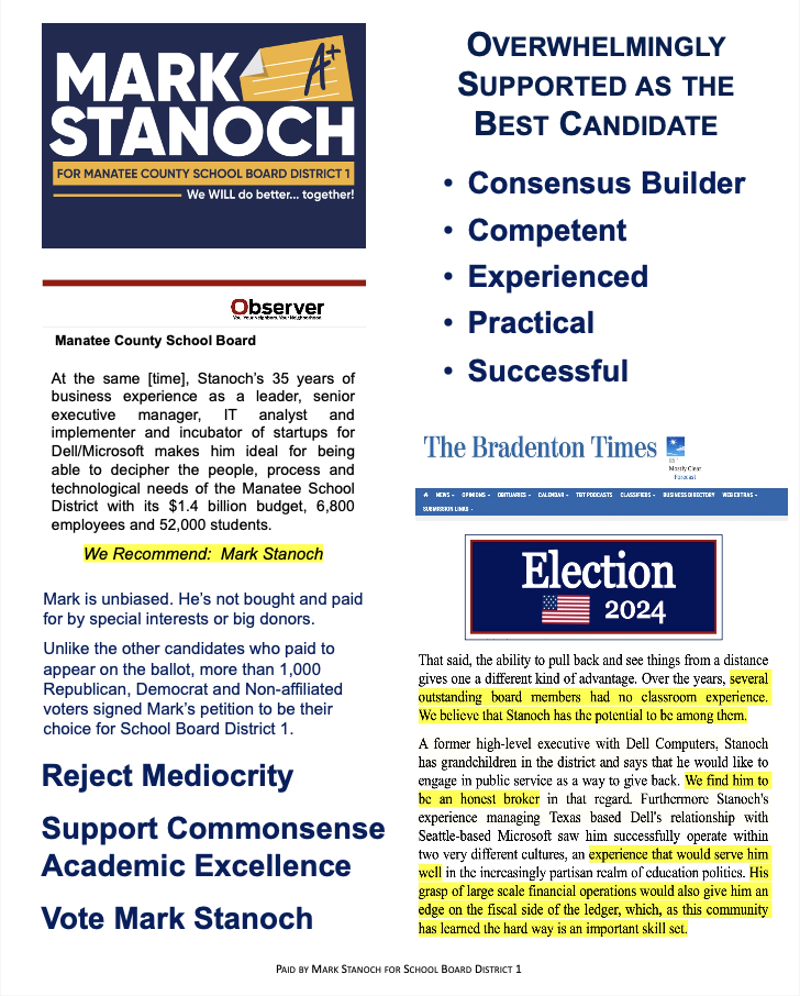 "I will be a voice on the Manatee County School Board championing the needs of our students."